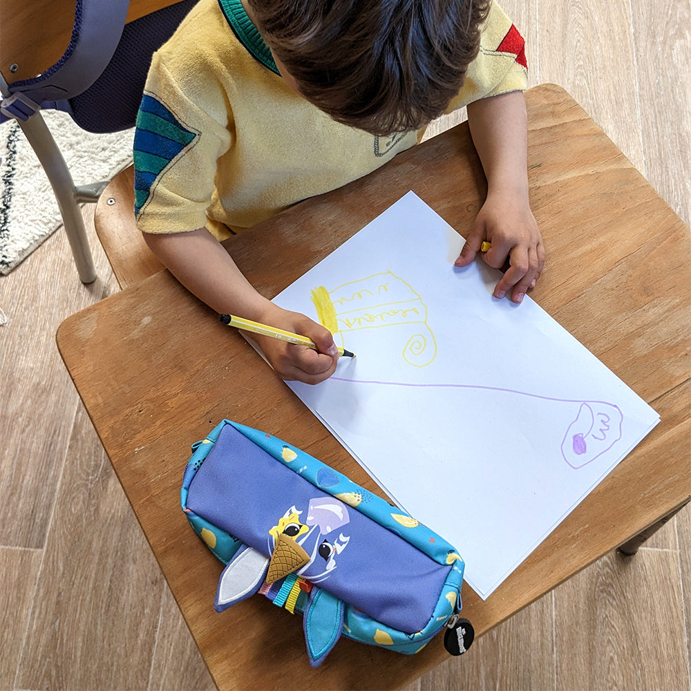 What better way to keep your "tools of the trade" organized than with this Les Deglingos pencil case. Sturdy & strong, yet cute and colourful. This kit is easy to open and close thanks to its maxi zipper. With its funky, modern prints this pencil case will keep your child's school stationery organised.