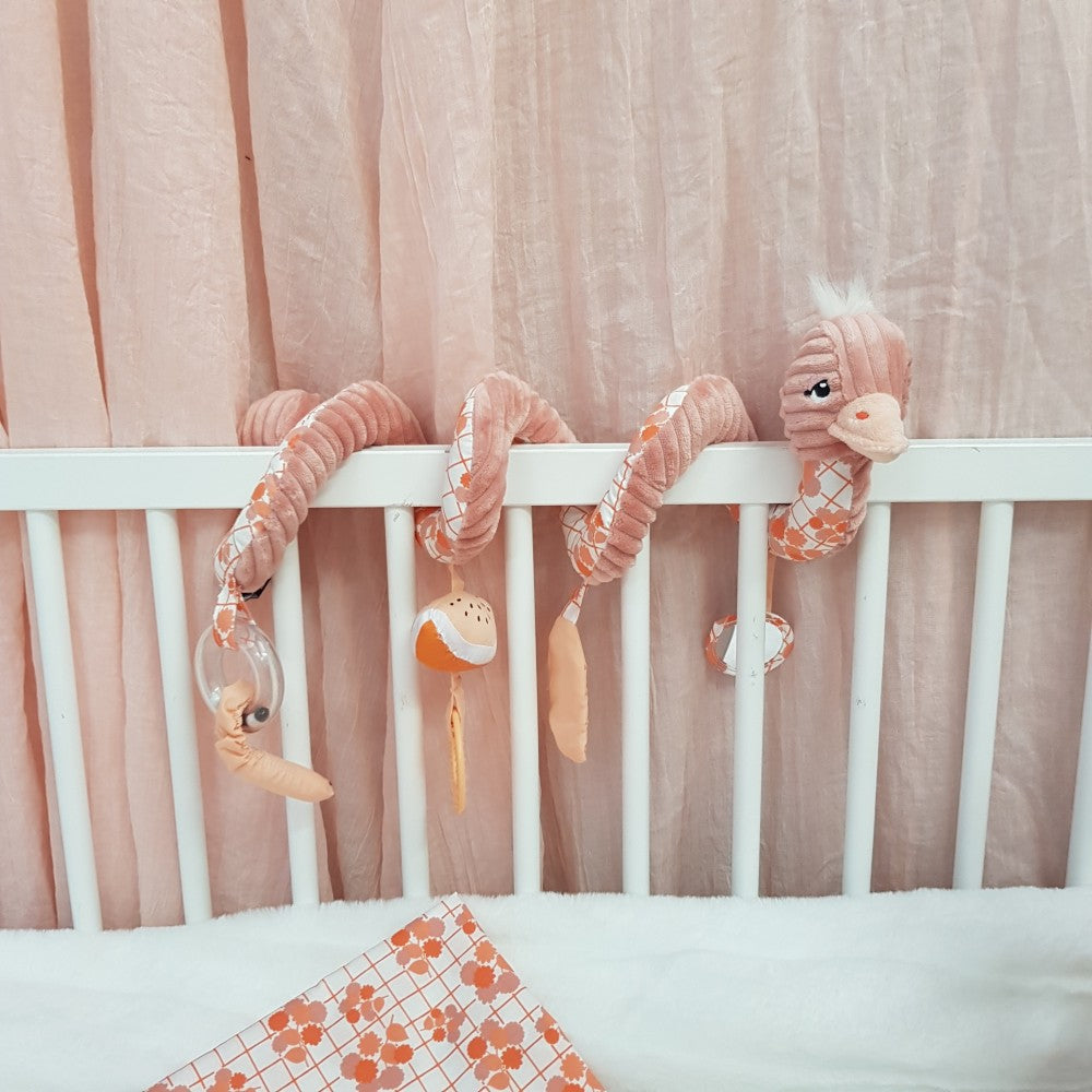 Exploratory Range for Babies. Spirals Contain Multiple Activity Functions, squeaker, Crinkly, Shaky, Mirror and tactile fabric details. The DISCOVERY SPIRALS can be wrapped around cribs, prams and car seats, Helps with Motor Skills and Auditory Development.