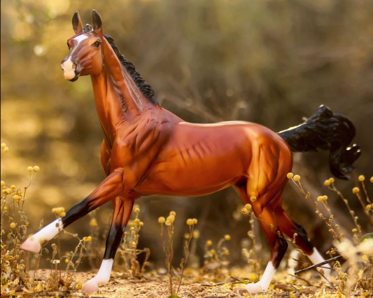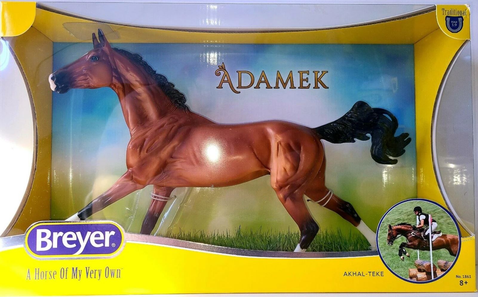 Now owned by the Akhal-Teke Foundation and trained and ridden by Sabine Desper, Adamek currently competes in 4th Level Dressage and Training Level 3 eventing. In 2017, he competed at the USEA’s American Eventing Championship at Training Level, earning himself and Sabine their Blue Ribbon Award. With multiple #1 placings in both dressage and eventing at recognized shows, he and Sabine have their sights set on entering Prix St. George level in the near future. His versatility and athleticism, paired with bravery and a friendly personality, make Adamek a fine example of the Akhal-Teke breed.