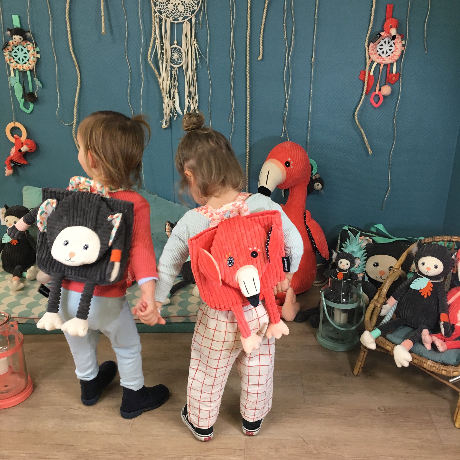 The iconic Déglingos little corduroy backpack for Toddlers, making a safe keep place for that special toy/trinket / tuck money /snacks / sweets. Perhaps the tooth fairy might make a special visit! With its prettiest ribbed velvet touch, this "doudou" bag will accompany kidos to their first walks or to go to school. With its large adjustable braces and its pretty fluffed handle, the Déglingos backpack is easy to wear from 18 month-old!