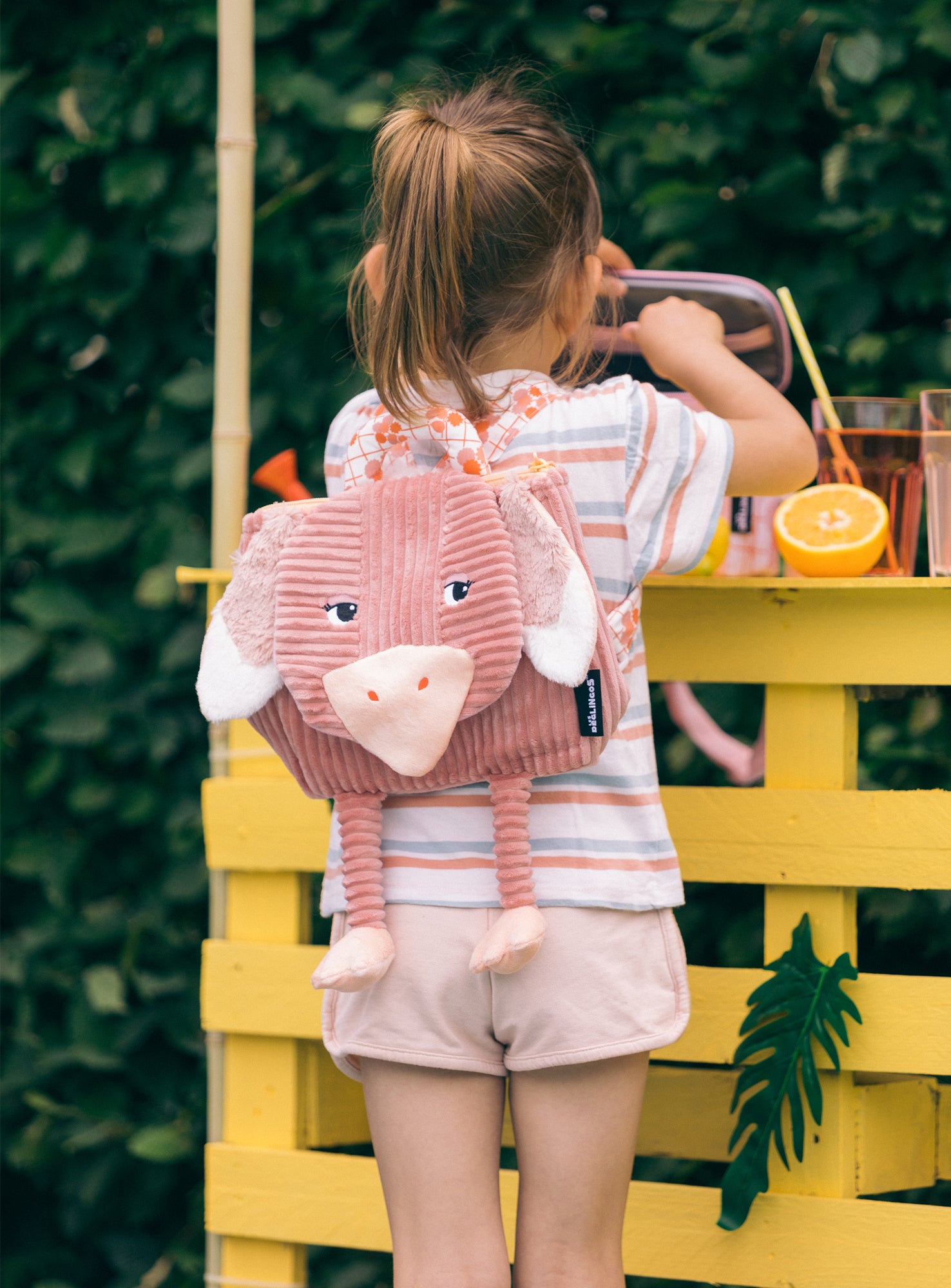 The iconic Déglingos little corduroy backpack for Toddlers, making a safe keep place for that special toy/trinket / tuck money /snacks / sweets. Perhaps the tooth fairy might make a special visit! With its prettiest ribbed velvet touch, this "doudou" bag will accompany kidos to their first walks or to go to school. With its large adjustable braces and its pretty fluffed handle, the Déglingos backpack is easy to wear from 18 month-old!