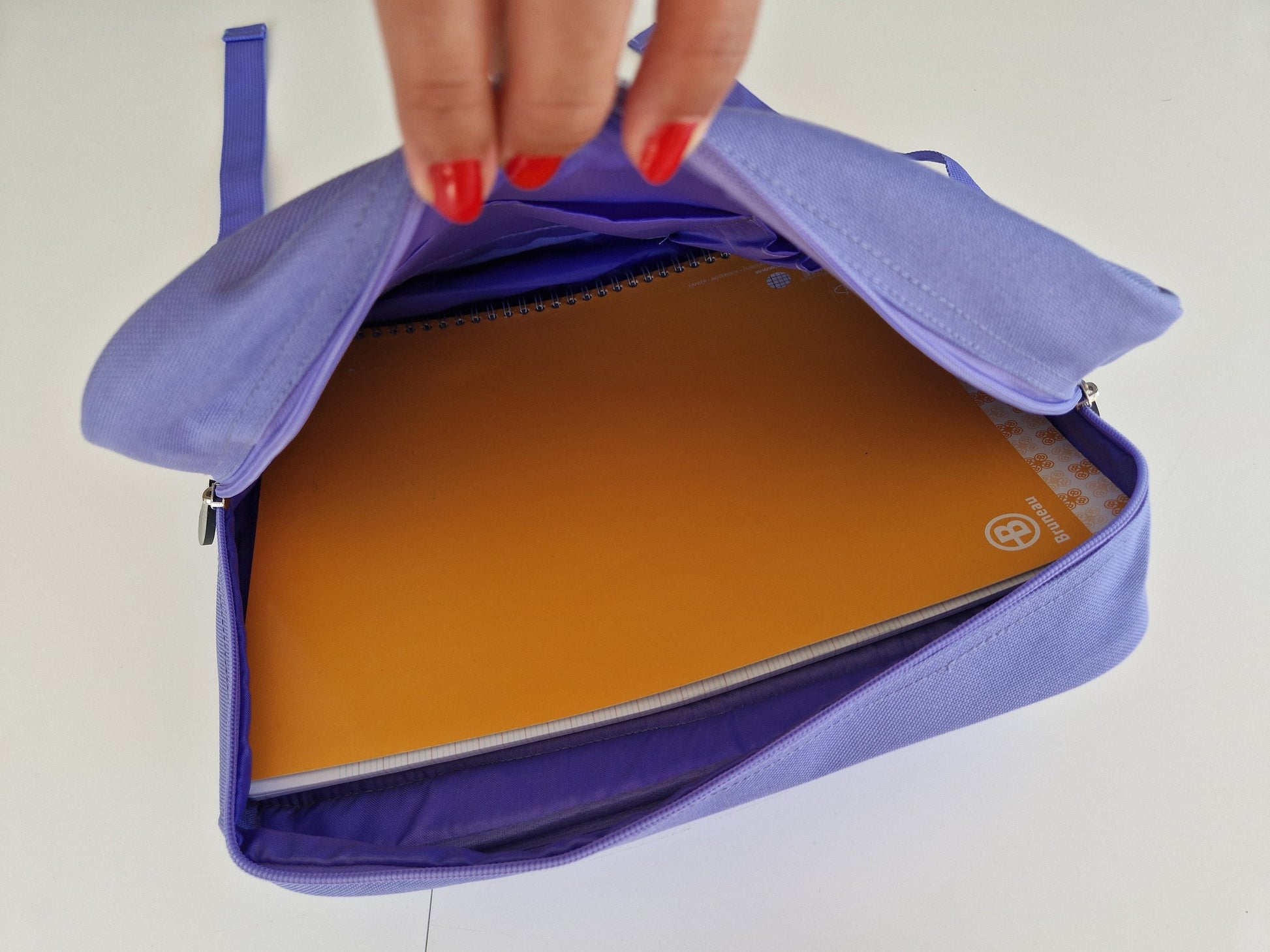 This purple and colorful satchel fits A4 pockets and has multiple storage pockets: a front Velcro pocket - behind the head flap - and a large compartment with storage. It also has a label holder to enter your name and a pencil holder. Its adjustable and padded straps have reflective strips so you can be seen at night.