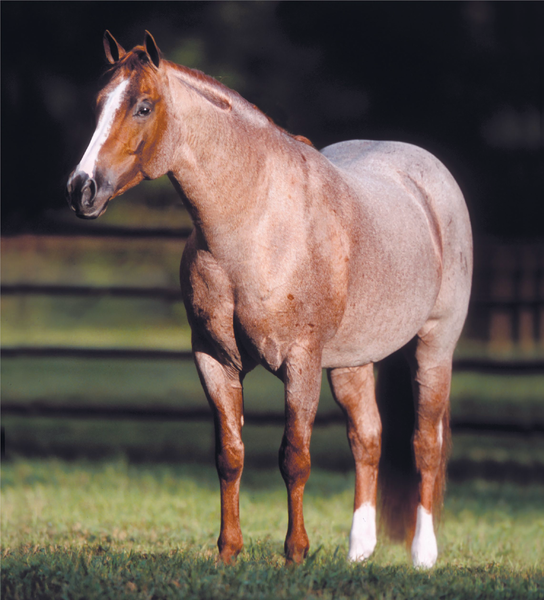 Peptoboonsmal is a winner of over $180,000 in National Cutting Horse Association competitions and 1995 NCHA Futurity Open Champion. He is an overwhelmingly successful sire: Peptoboonsmal’s offspring have earned over $26 million dollars in competition, primarily in cutting and reined cow horse events. Pepto’s distinctive strawberry roan coloring and white blaze are often passed on to his progeny.