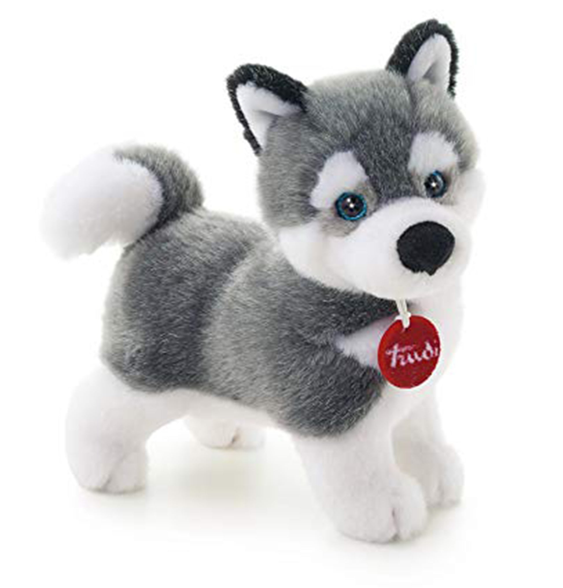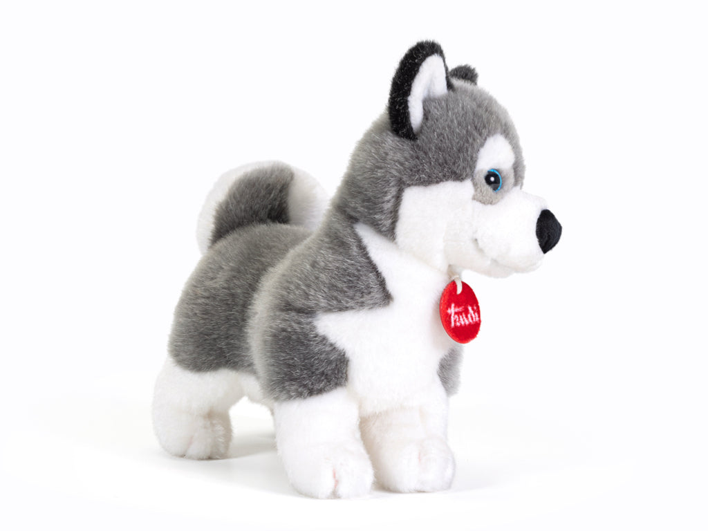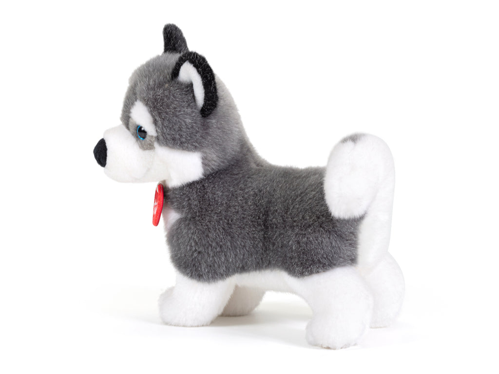 The fur and colors used faithfully represent the Siberian Husky. The detail of the ears, the alternation of grays and whites as well as the thick tail give it a realistic touch. The position is on all fours and the interpretation is like a puppy.