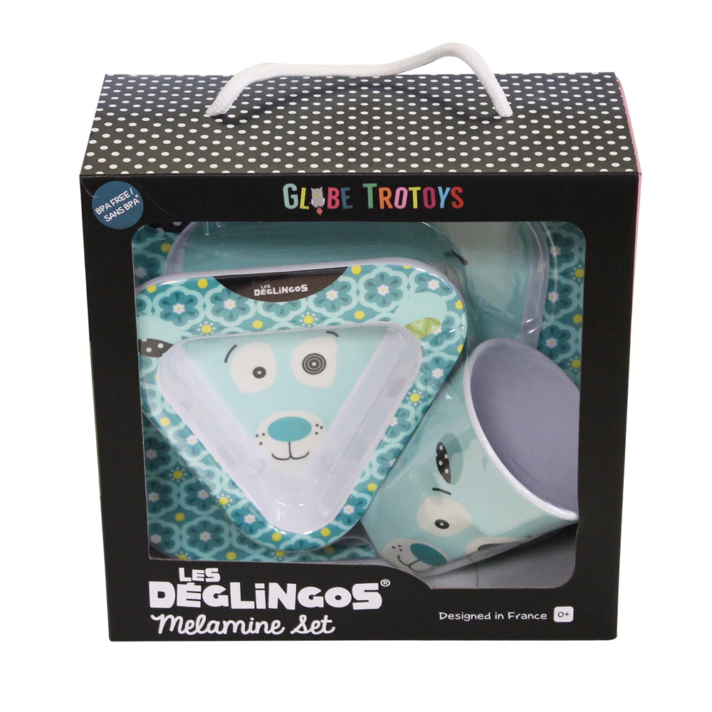 "Mealtimes will be even more fun with Deglingos range of functional tableware and cutlery. Featuring the familiar Deglingos characters, the bright colours and funky design will be loved by little ones. All items are Dishwasher Safe. All Melamine Sets Include 1 x plate, 1 x Bowl and 1 x Mug. The perfect Gift for your little person. "
