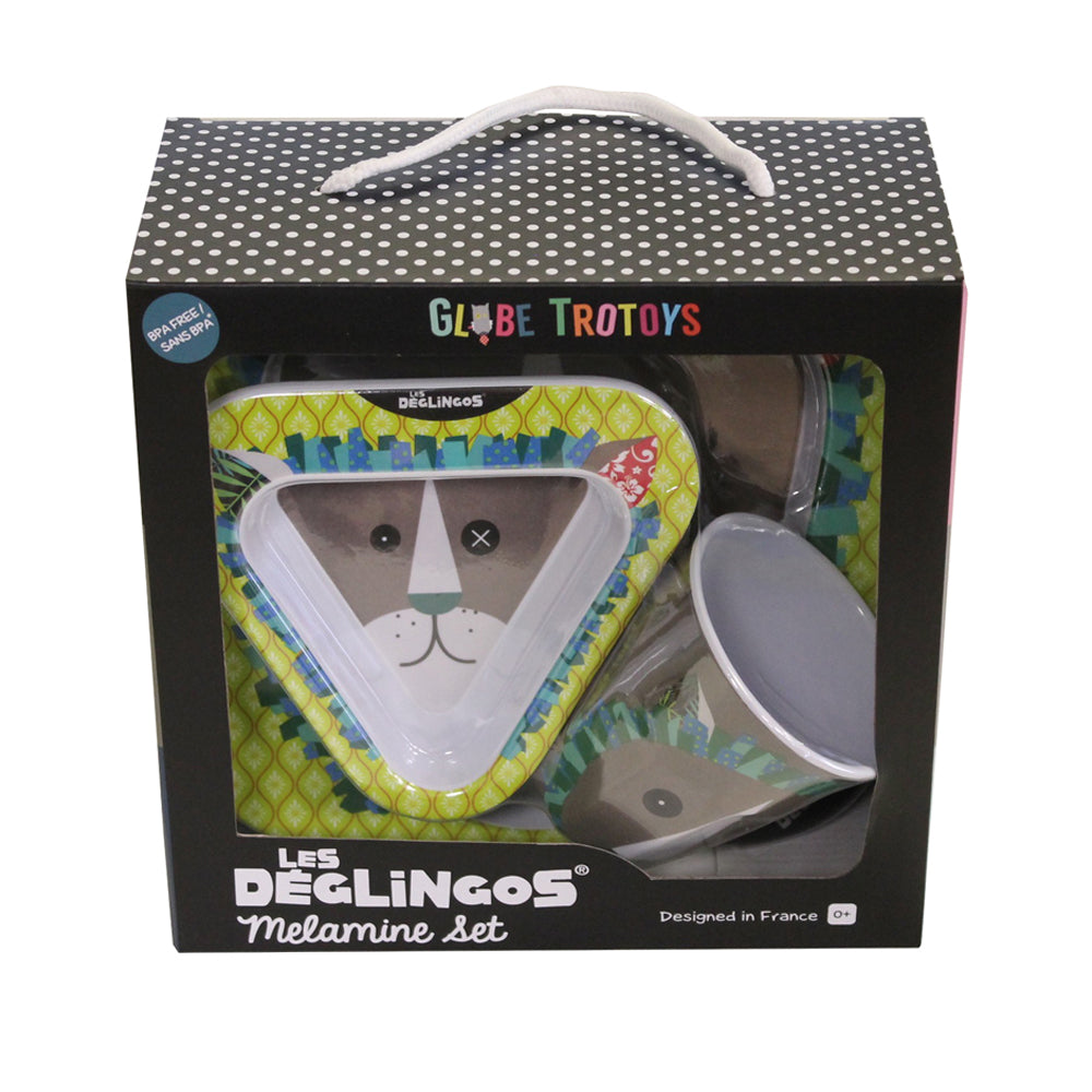 "Mealtimes will be even more fun with Deglingos range of functional tableware and cutlery. Featuring the familiar Deglingos characters, the bright colours and funky design will be loved by little ones. All items are Dishwasher Safe. All Melamine Sets Include 1 x plate, 1 x Bowl and 1 x Mug. The perfect Gift for your little person. "