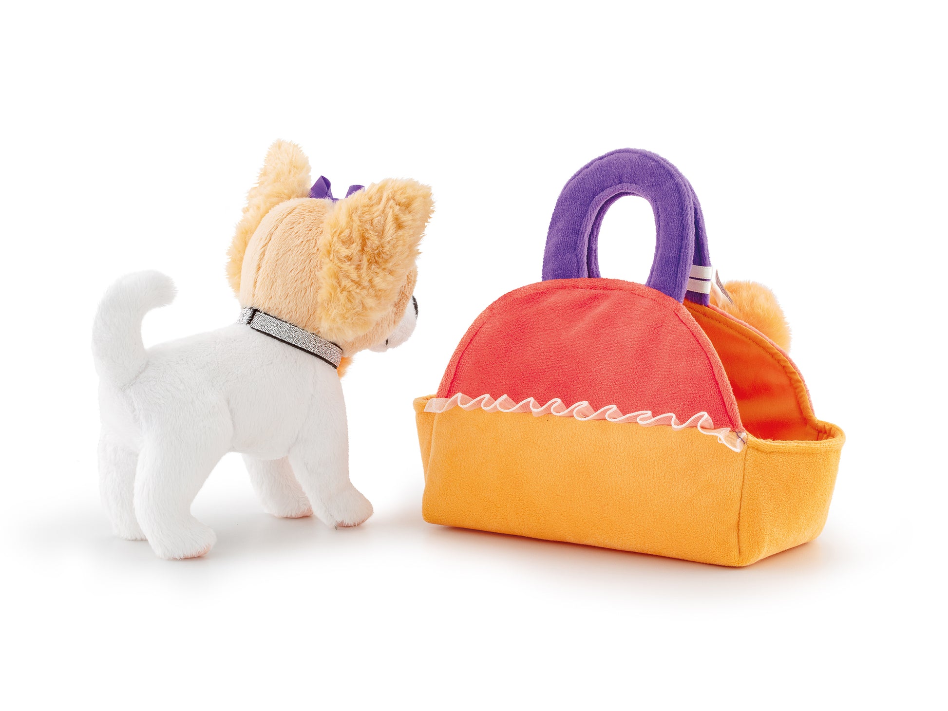 Trudi Fashionable Puppies in a designer Bag, allows that trendy feel and fashionable sense without sacrificing romance. Here are the new handbags and with them the new puppies. Each bag has a unique style and is decorated with ribbons and precious embroidery, also all have a colored on pompom which is removable and a collar that becomes silver elastic.