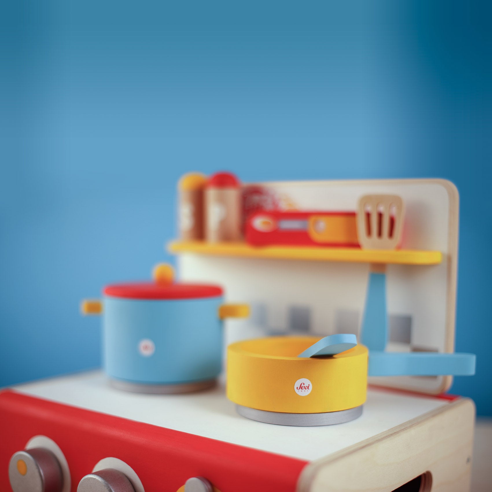 Here is the colourful Sevi portable cooker, ideal to always carry with you! Made of wood and cared for in every detail , it has two burners and is complete with pots, ladles and accessories to offer its guests a refined menu on all occasions!