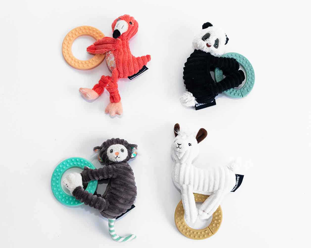 Plush chews, a maxi teething ring to bite! From Déglingos to chew? So that's cool! A Deglingos soft toy clings to a maxi teething ring to accompany baby everywhere to relieve their itch! 1 x theeting ring with detacable 22cm plush