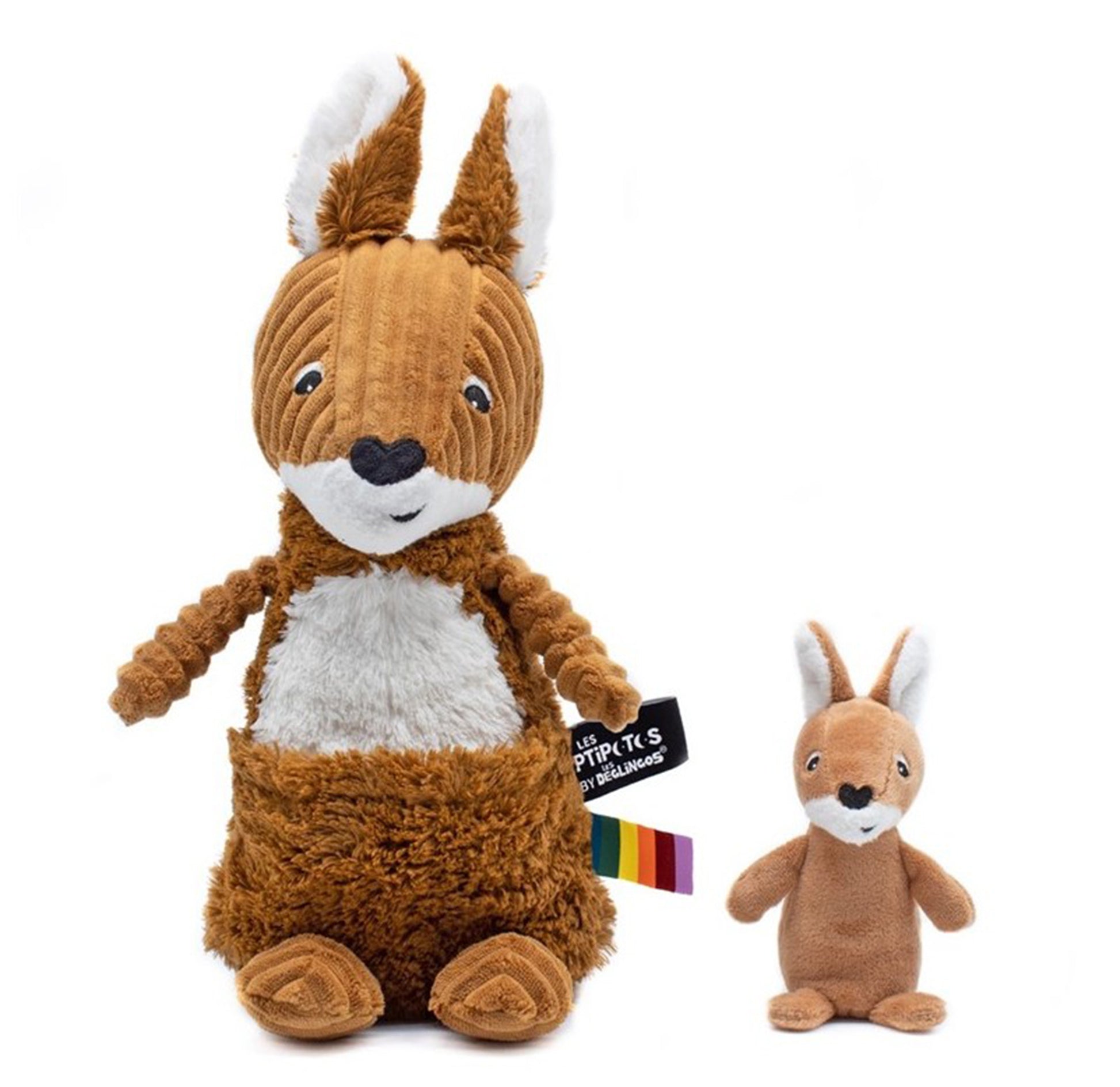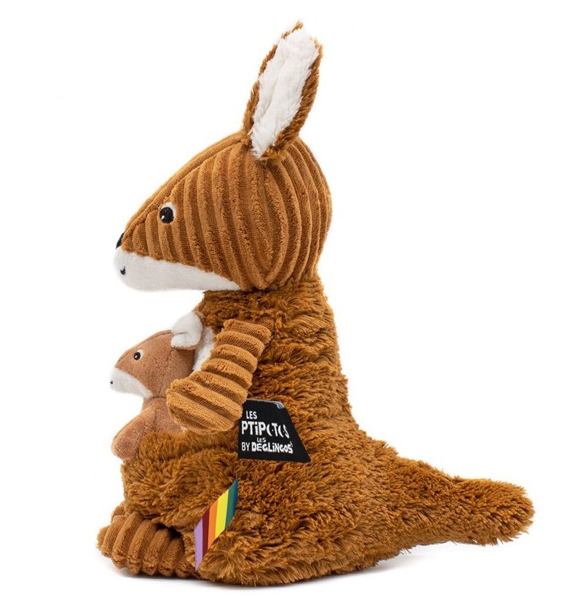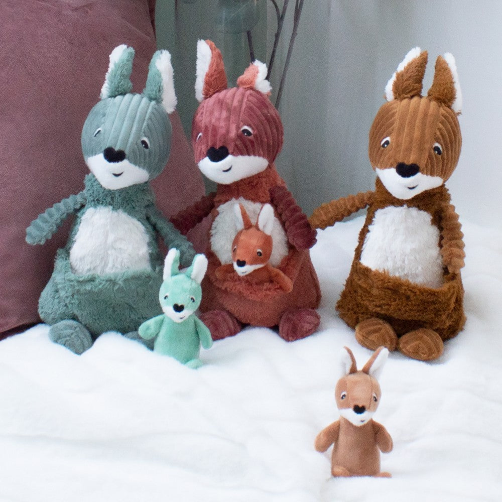 This beautiful brown terracotta kangaroo is your new tag-along buddy! It's full of surprises! Always with her baby, it's double dose of hugs! His big soft ears are there to listen to all your babies secrets.